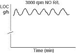右図はオイル消費のメカニズムを知ることができる一例ですが、試験エンジンを無負荷高回転させた時のオイル消費量の傾向を示したデータです。この現象は各ピストンリングが無負荷の状態のためリングが回転しやすい状態となり、各リング溝からオイルが燃焼室へリークしているオイル消費のメカニズムを捕らえたデータです。サインカーブのような周期性があるようです。
